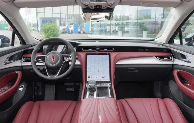 红旗 H5 的外观设计大气,借鉴了家族旗舰 H9 的设计语言,比如大气的直瀑式进气格栅、飞翼式的 LED 大灯等元素,让人联想到经典的红旗形象。内饰方面,采用无边界设计理念,以中央的内嵌式屏幕逐渐向两侧发散,延续了红旗经典的环抱式架构。12.6 英寸的 LED 中控竖屏、12.3 英寸的液晶仪表都配备了高清 LED 屏幕,并采用 AI-Si 涂层,抗刮无痕,不留指纹。大尺寸全景天窗使视野通透。